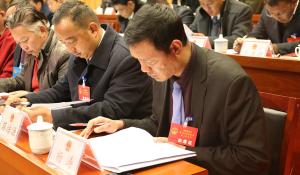 与会人大代表、特邀、列席人员认真聆听工作报告